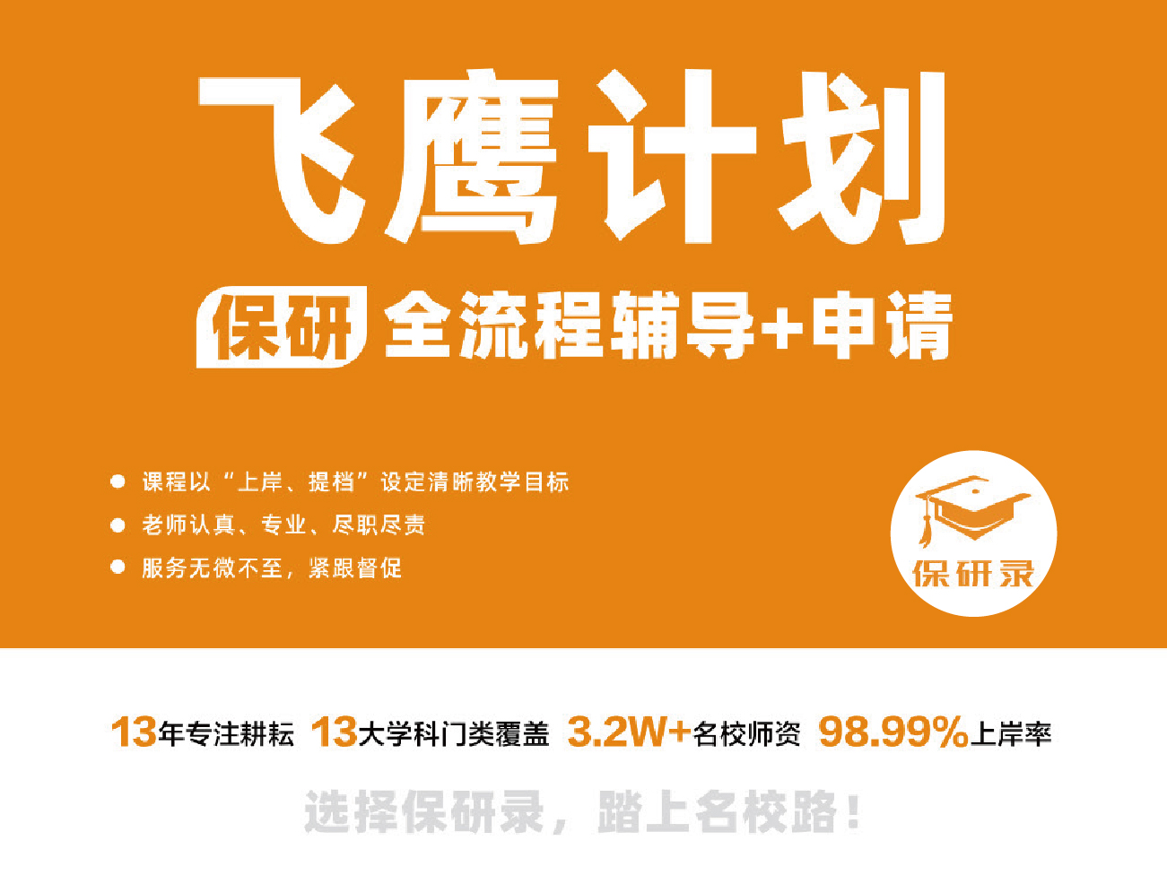 保研路上,你是否面临这些困境?📌 大一迷茫:不知如何提升绩点、规划科研方向?📌 大二焦虑:英语六级难突破、竞赛备赛无头绪?📌 大三冲刺:目标院校定位模糊、文书没亮点、面试易紧张? 保研录,13 年专注保研辅导,用三大核心优势为你破局 ——✔️ 全周期陪伴:从大一直击大三,绩点、科研、文书、面试全覆盖;✔️ 顶尖师资加持:清北复交 3.2W + 名师团队,1v1 定制 “冲 - 稳 - 保” 策略;✔️ 高性价比成果:98.99% 上岸率,助力双非逆袭、学霸冲刺顶尖名校!让专业团队陪你走好保研每一步,圆梦理想院校!